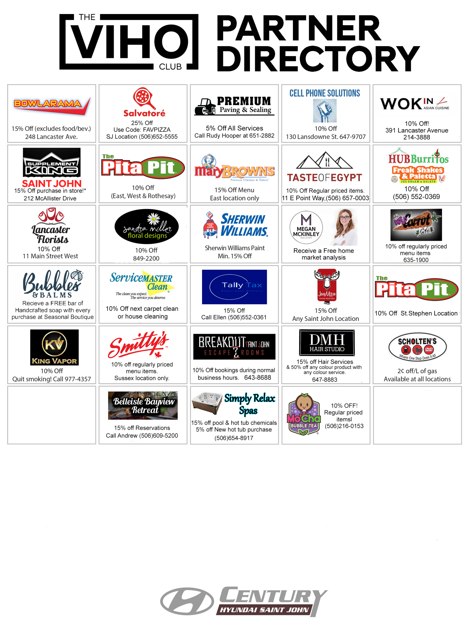 You will get to enjoy saving $$$ at local businesses all across Southern New Brunswick when you show your VIHO Card!